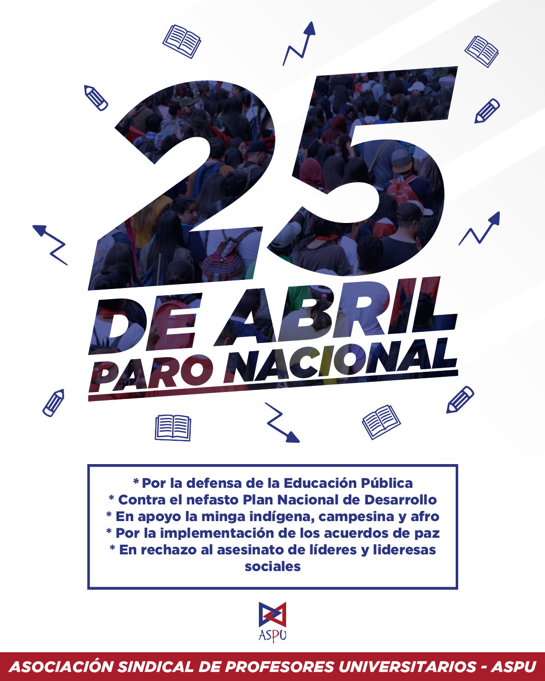 El 25 de abril será la gran jornada de Paro Nacional, convocado por organizaciones sociales, sindicales y políticas del país.